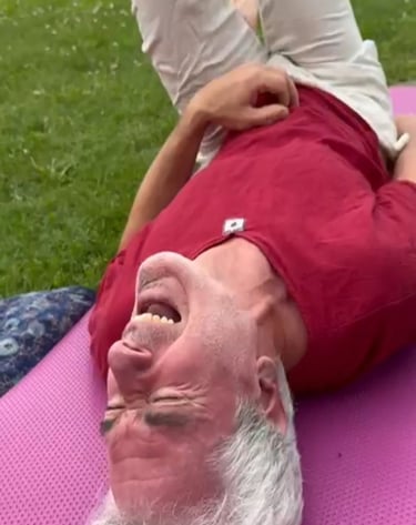 Moments joyeux capturés lors de nos séances de yoga du rire.